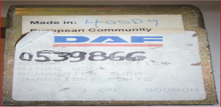 HINGE R/H,DOOR(F3300) (Part No. 539866) is a genuine DAF truck component.